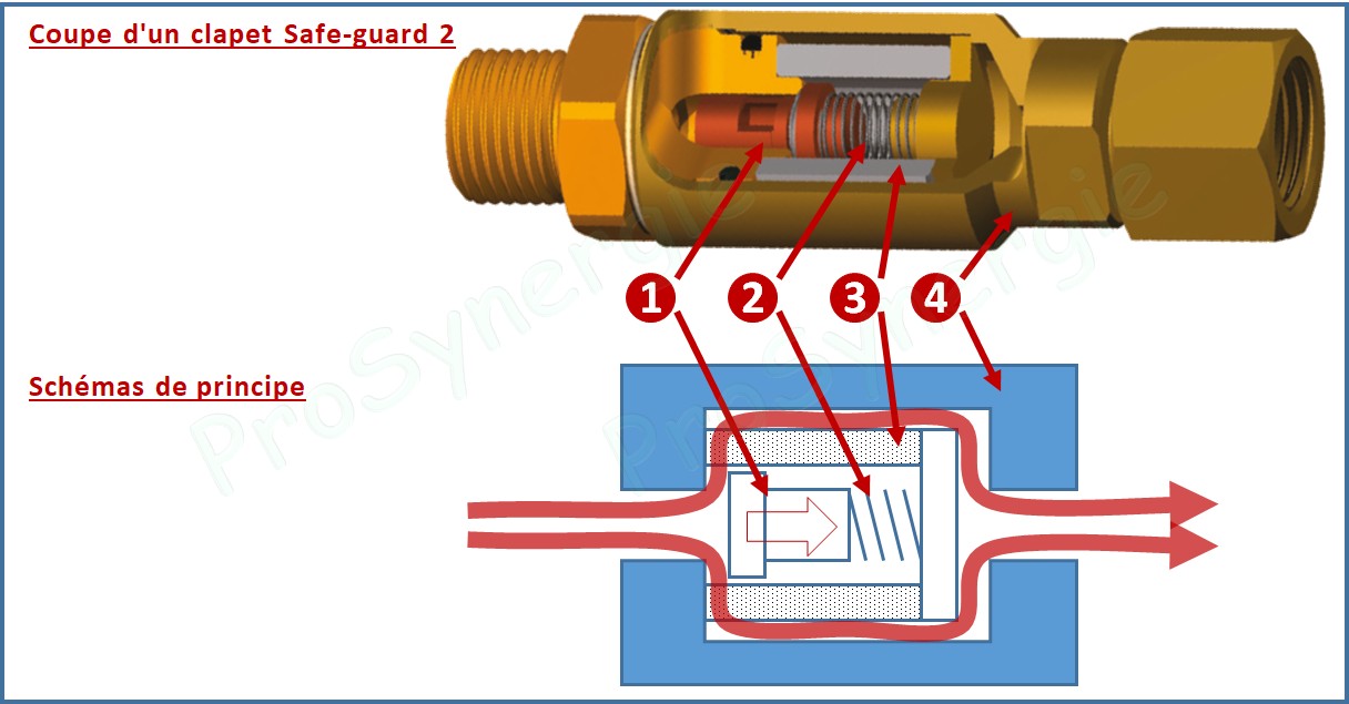 C'est un clapet de sécurité de sécurité anti-retour à deux niveaux de sécurité :
