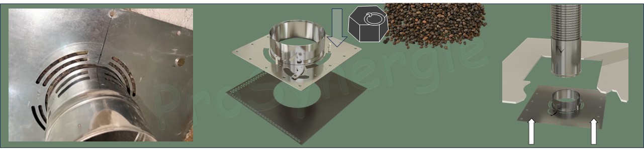 La plaque Ecoten est une plaque technique renforcée pouvant soutenir le poids de l'isolant et assurant la ventilation basse du conduit de cheminée. Les aimants permettent le maintien de la plaque de finition ventilée.