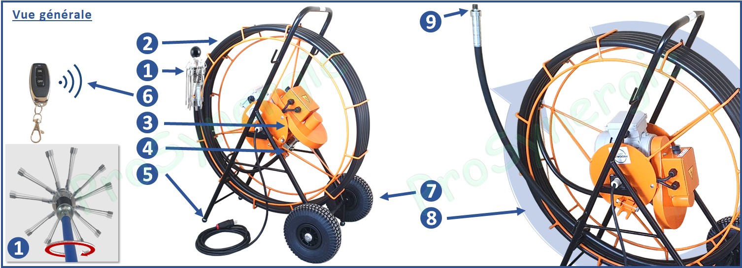 Fabricant et concepteur : PROGALVA ENERGIES Le Rotonet Double Sens est la nouvelle version (année 2023) de l'appareil à débistrer Rotonet. Il garde les spécificités de la version précédente tout en ajoutant la possibilité de faire tourner le moteur dans les deux sens. La commande filaire est remplacée par une télécommande. La débistreuse Rotonet est conçue pour éliminer les dépôts de bistre dans les conduits de cheminée. Dans certains cas, des dépôts dûrs, issus de la combustion de bois notamment, s’accumulent dans le conduit, pouvant aller jusqu’à l’obstruction. Dans ce cas, le matériel classique (cannes ou corde avec hérissons, même acier) est totalement inefficace au nettoyage de ces conduits. Le Rotonet Roue, avec sa tête flexible équipée de câbles à masselotte pourra dans ce cas efficacement nettoyer (« débistrer ») ces tubes. | ![]() |