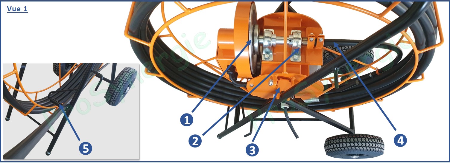 Figure "Vue 1" : Moteur, entaînement et guidage du câble