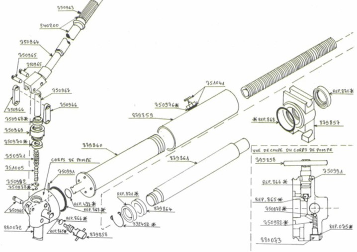Il s'agit d'une composition de joints, roulements, filtre, billes... pour la réparation des fuites hydraulique sur les vérins. Ci-dessous la composition du vérin manuel n°2.